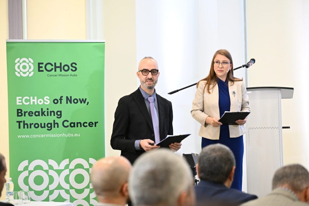 The National Cancer Mission Hub Bulgaria (NCMHB) was established at a forum organized by the Bulgarian Joint Cancer Network (BJCN) in partnership with the ECHoS initiative – a pan-European platform uniting over 60 leading organizations from 30+ countries in the fields of healthcare, science, innovation and civic participation. It was held at the GATE Institute of Sofia University “St. Kliment Ohridski” with the participation of a wide range of experts, Bulgarian MEPs, representatives of European cancer organizations and European institutions, and at the end a Memorandum of Synergy and Cooperation was signed to gave a symbolic start to the Hub. The goal is to start a sustainable trans-sectoral partnership between key stakeholders – public institutions, municipalities, academic and professional circles, civil society organizations and business, in sync with the European Mission on Cancer and ECHoS (Establishing Cancer Mission Hubs: Networks and Synergies).