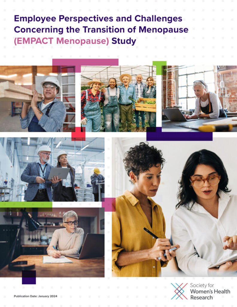 For example, in 2024, SWHR released findings from its Employee Perspectives and Challenges Concerning the Transition of Menopause (EMPACT Menopause) Study, which aimed to better understand the workplace experiences of individuals who have entered or completed the menopause transition, as well as their coworkers and employers.