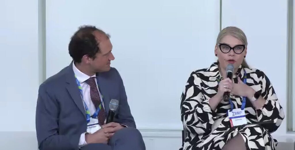 Dr Bruno Halpern and Lisa Schaffer sharing insights as part of the panel on ‘Integration of Health Systems and Primary Healthcare’